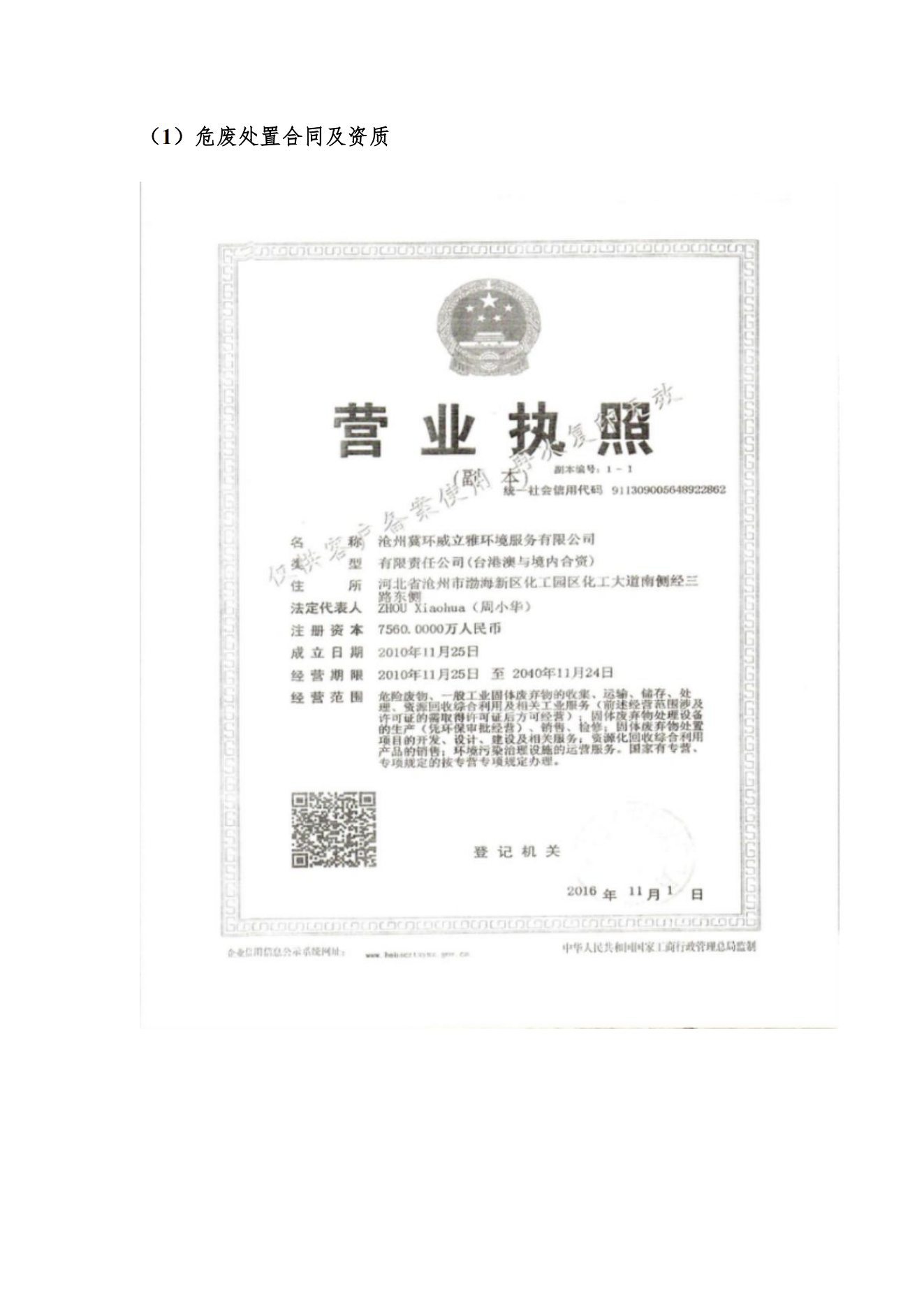 危廢處置協(xié)議及資質(zhì)